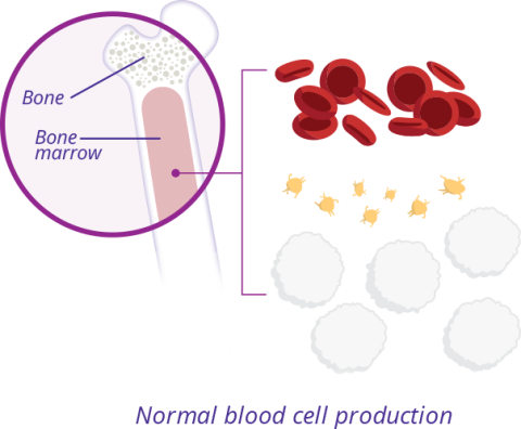 In people with MF, scar tissue builds up within the bone marrow, preventing it from making enough normal blood cells. Red blood cell and platelet counts typically decrease over time, while white blood cell counts may increase or decrease. The spleen partially takes over blood cell production, and this may make the spleen get bigger—a condition called splenomegaly (splee-nuh-MEG-uh-lee). This is a common finding in people with MF.
